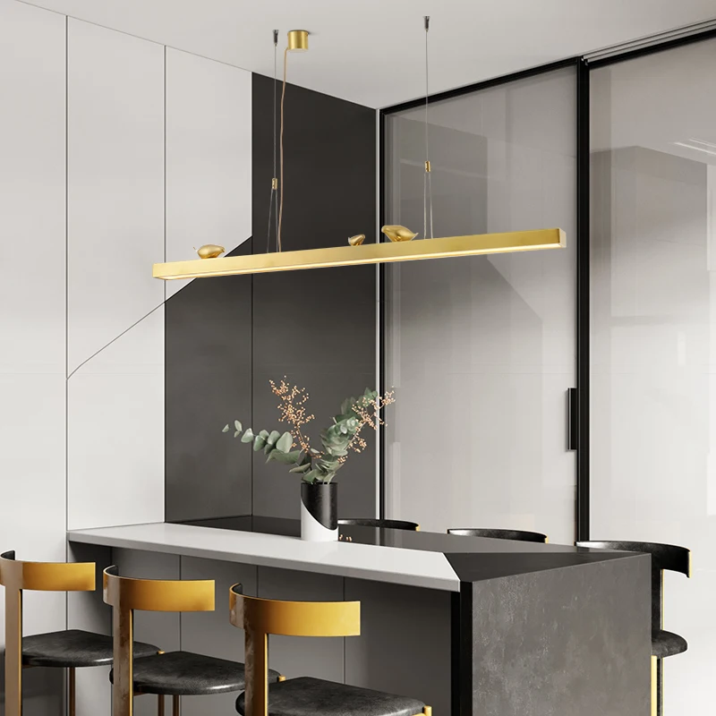 Product Name: Tira Minimalista Lustre Restaurante Lâmpada Barra Criativa Candeeiro De Mesa Personalidade Lâmpada Escritório Luz Cobre Cheio Luxo Pássaro