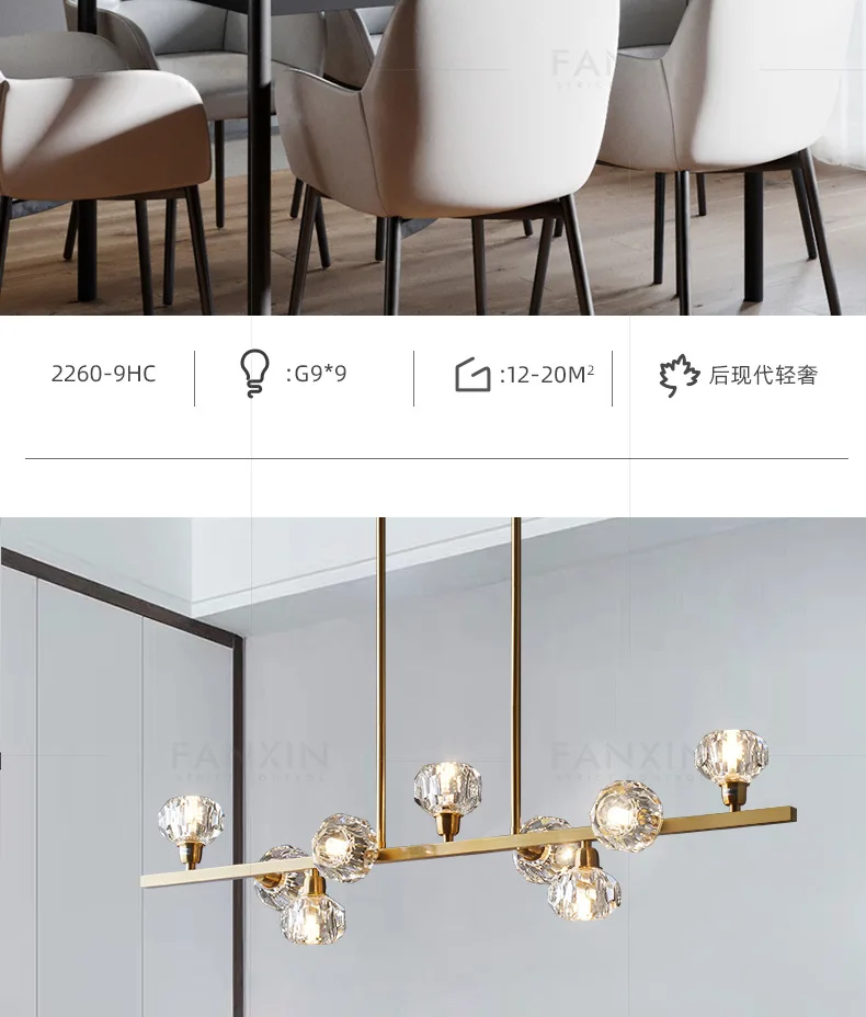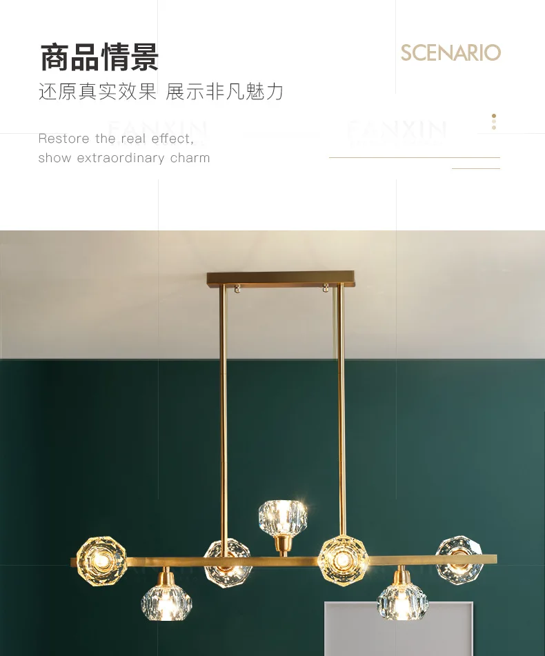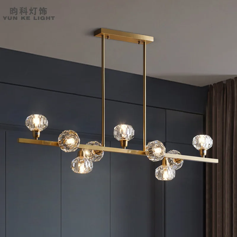 Product Name: Nordic Restaurante All-cobre Sala De Estar Luz De Cristal De Luxo Simples Criativo Pós-moderno Quarto Lâmpadas Tira Longa