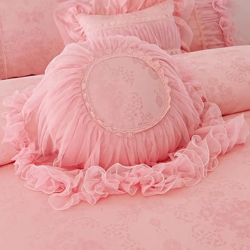 Product Name: Vermelho Rosa Roxo Princesa Estilo Coreano Rendas Conjunto De Cama Luxo Rainha Rei Folha Cama Capa Edredão Conjunto Saia Parure De Lit