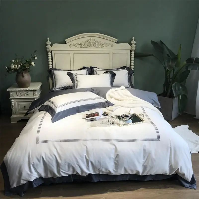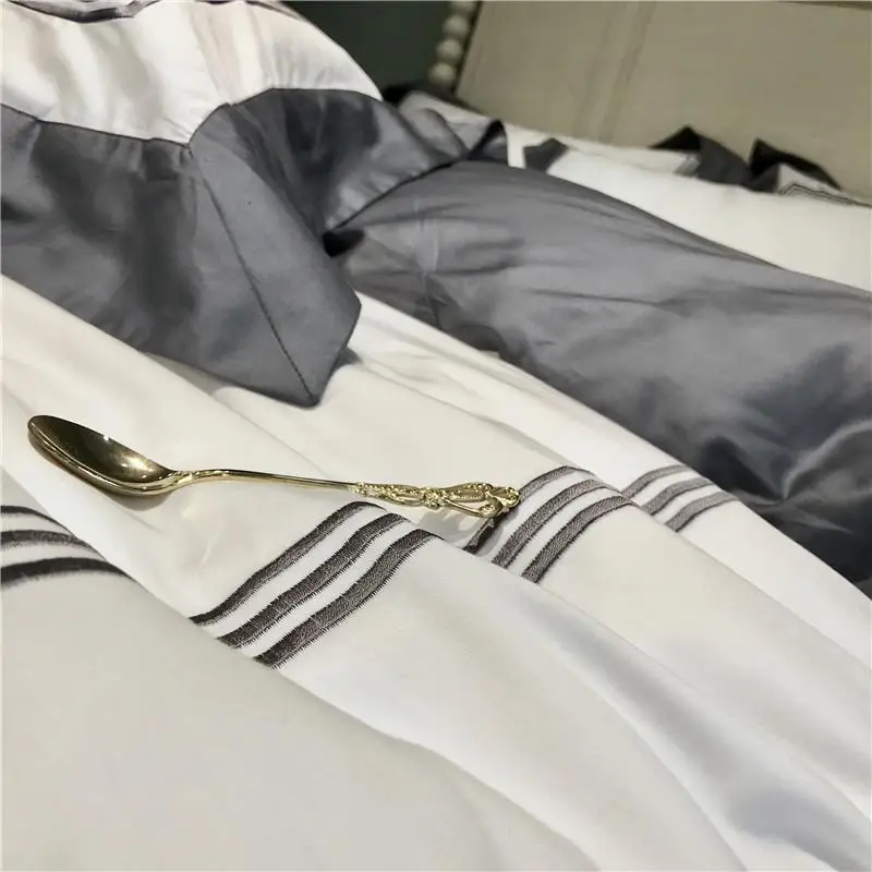 Product Name: Branco Cinza Egípcio Algodão Capa De Edredão Folha Cama Conjunto Bordado 4pcs Rainha/rei Tamanho Cama Conjunto Hotel Conjuntos Parure De Lit