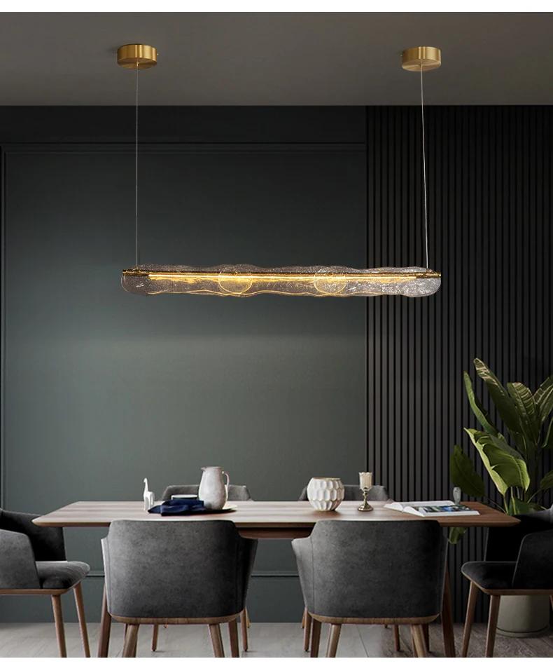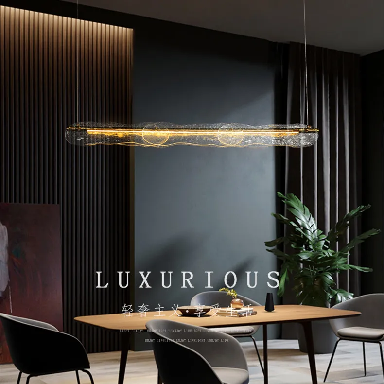 Product Name: Pós Moderno Todo-cobre Sala De Jantar Lustre Luz Led Tira De Luxo Nordic Minimalista Sala De Jantar Barra De água Padrão Lâmpada De Vidro