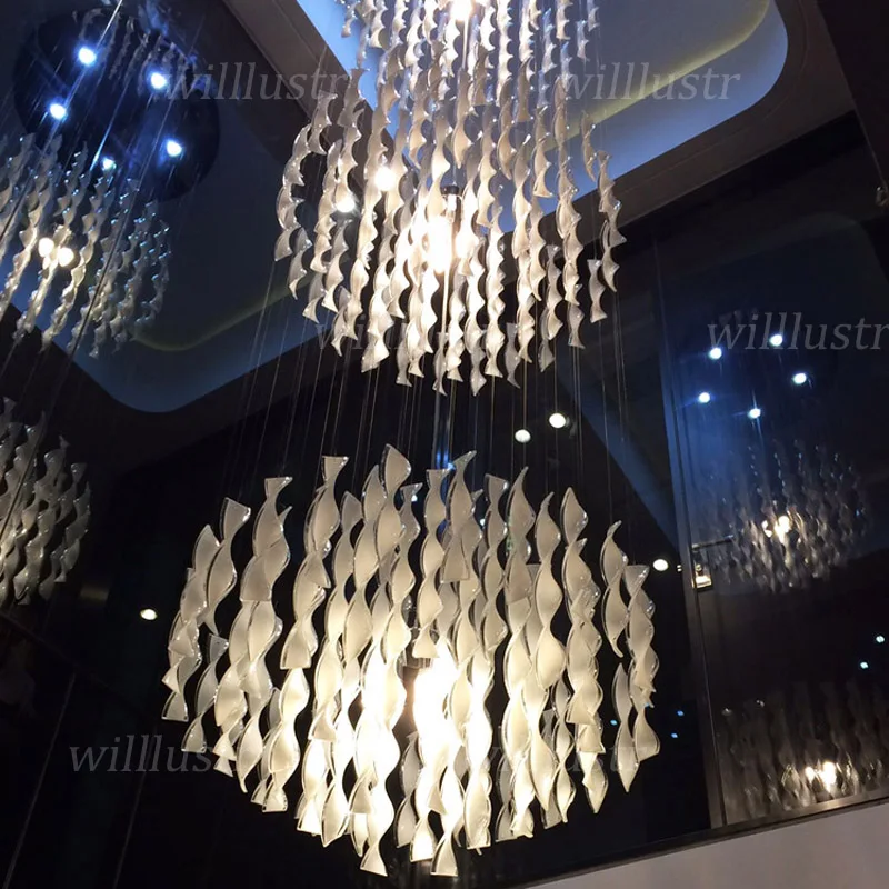 Product Name: Tira De Vidro Torcida Lâmpada Pingente Luxo Moderna Suspensão Luz Do Hotel Restaurante Salão Villa Duplex Sala Estar Quarto Escada