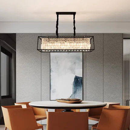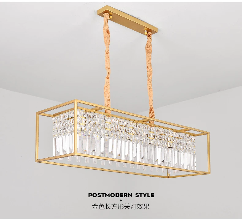 Product Name: Americano Luz Da Sala De Jantar Luxo Lustre Moderno E Minimalista Lâmpada Da Sala De Jantar Mesa Jantar Cristal Longa Tira Lâmpada Do Agregado Familiar