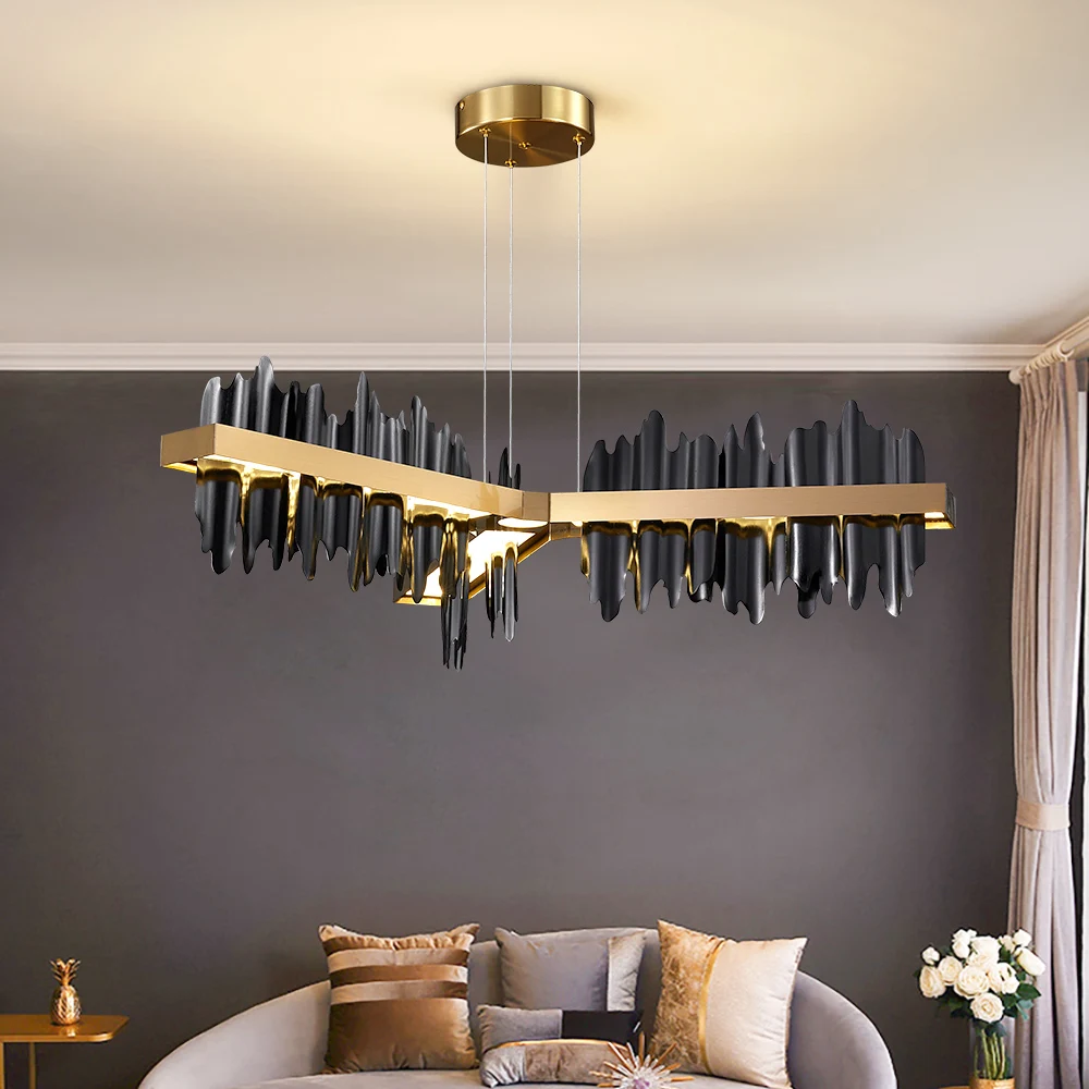 Product Name: Iceberg Quente Novo Preto/ouro Iluminação Lustre Design Simples Led Pendurado Lâmpada De Aço Luminárias Modernas Lâmpadas Led Tiras